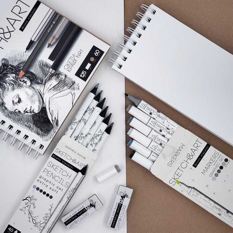 Карандаши художественные, пастель, уголь, ручки, маркеры