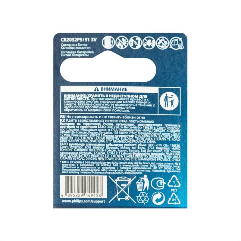 Батарейка Philips  3.0V CR2032 Lithium  в блистере