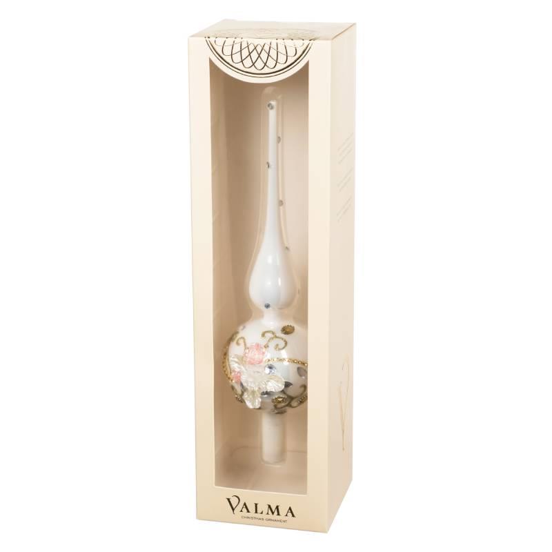 Верхушка на елку 31см стекло полиэстр белая VALMA