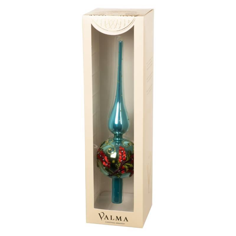 Верхушка на елку 31см стекло полиэстр голубая VALMA