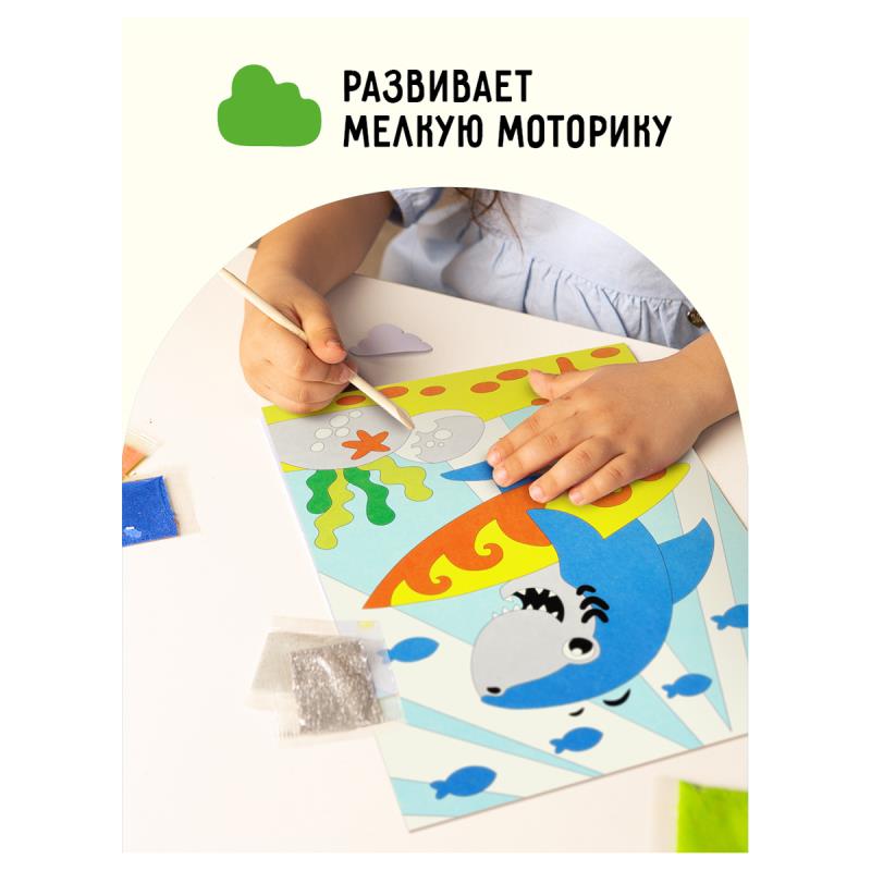 Набор творческий ТРИ СОВЫ Аппликация фольгой и песком 'Акуленок' с раскраской