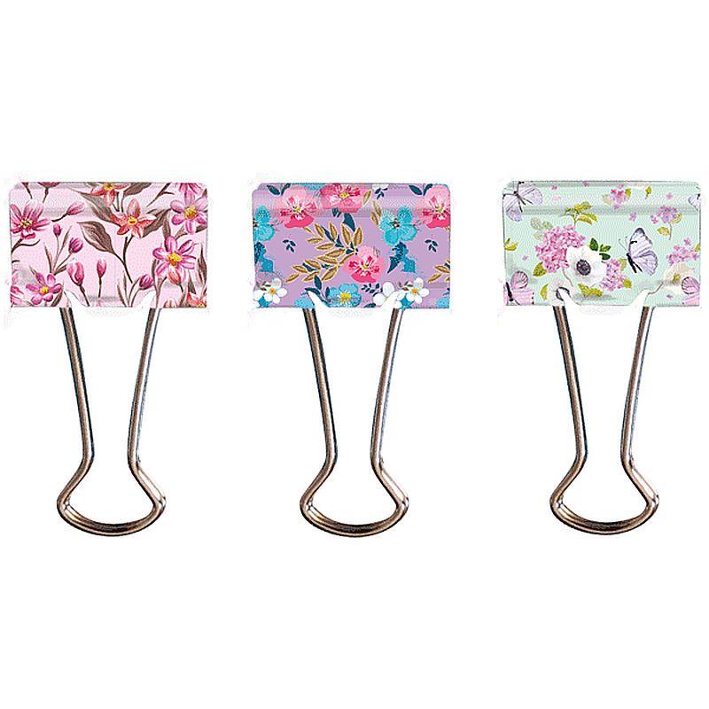 Зажимы для бумаг 32мм  6шт deVENTE цветные 'Flowers' 6 дизайнов в блистере