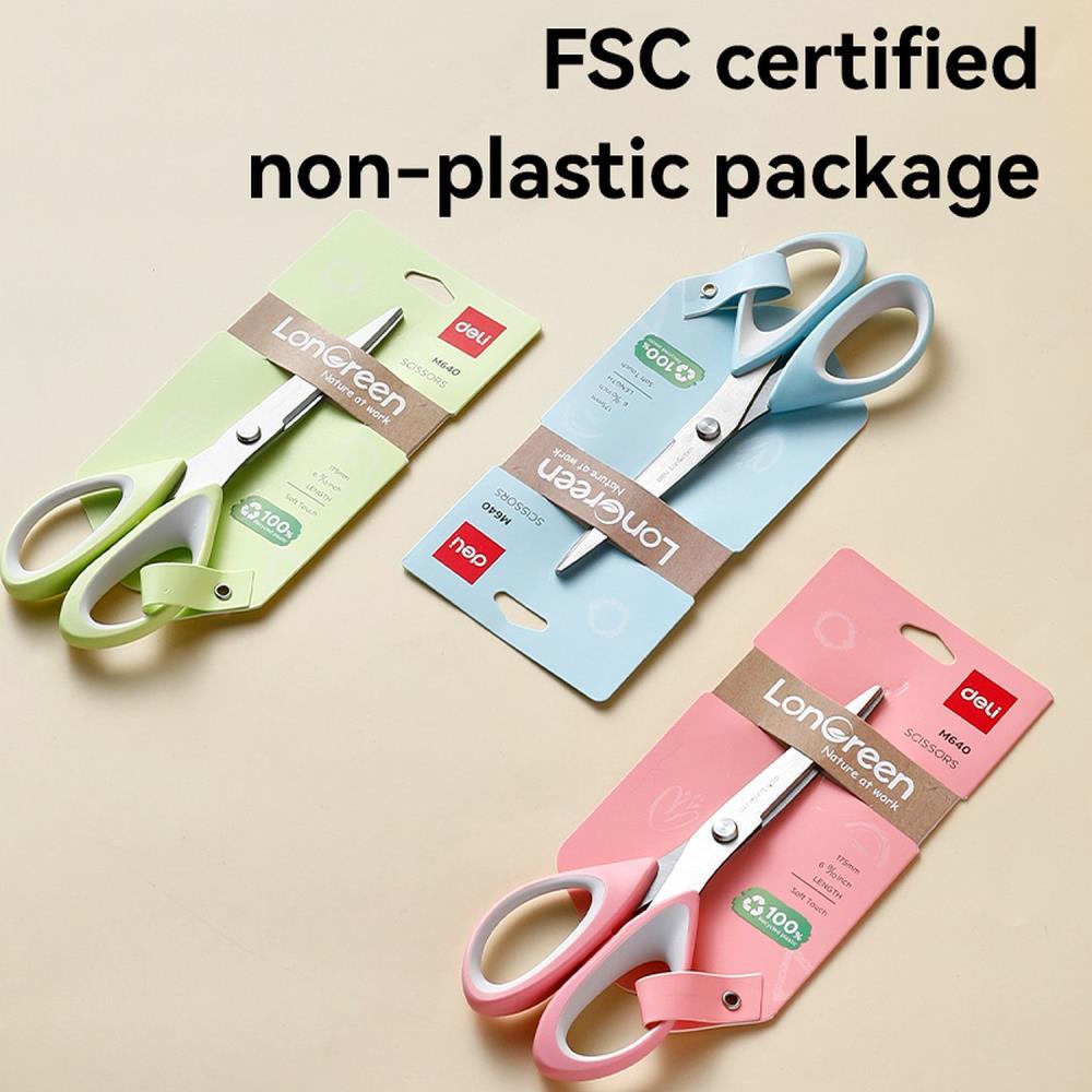 Ножницы 17см Deli 'LonGreen' с резиновыми Soft touch вставками 3 цвета ассорти