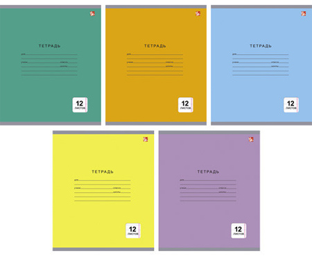 Тетрадь A5  12л линейка на скрепке Unnika land® однотонная картонная обложка 5 цветов