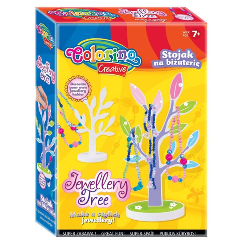 В набор входит: стойка для украшений, краски 6цв, кисточка, бусины.
