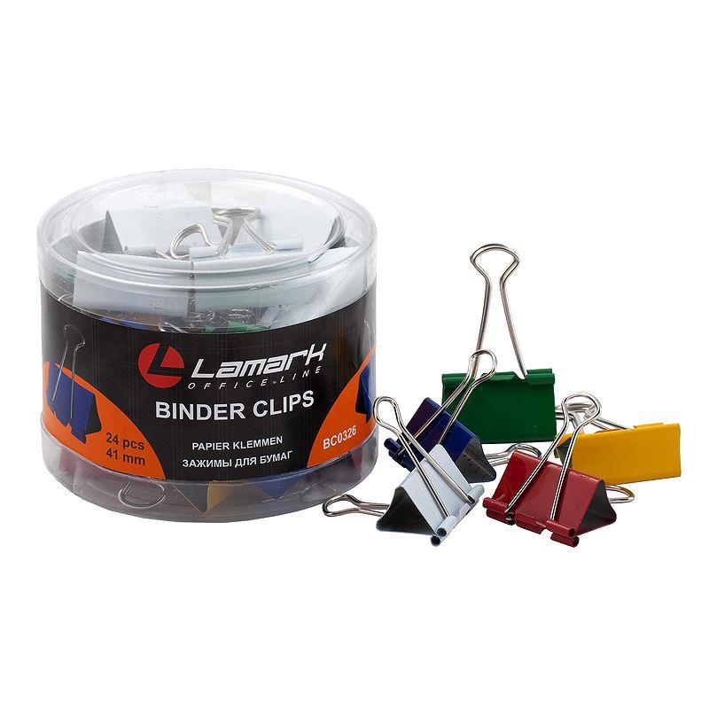 Зажимы для бумаг 41мм 24шт Lamark цветные в пластиковой банке