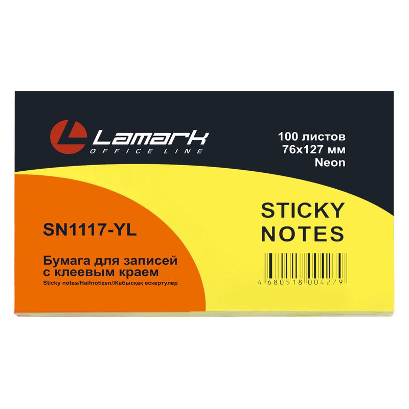 Липкий блок 127х 76мм Lamark 100л  неон желтый