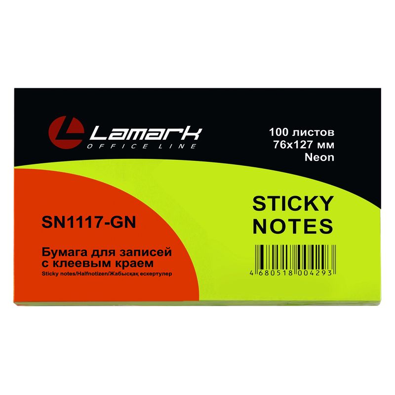 Липкий блок 127х 76мм Lamark 100л  неон зеленый
