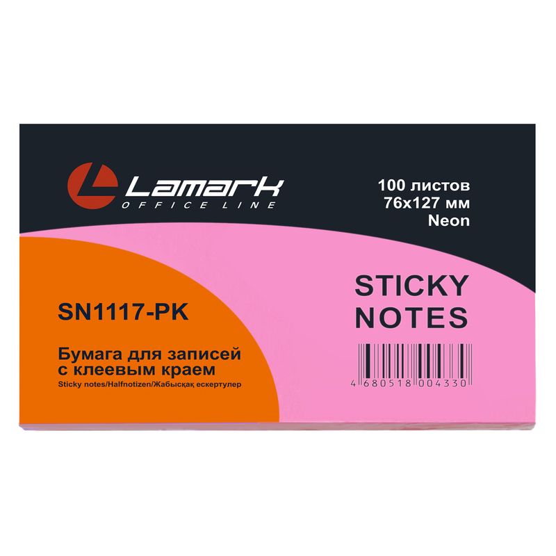 Липкий блок 127х 76мм Lamark 100л  неон розовый