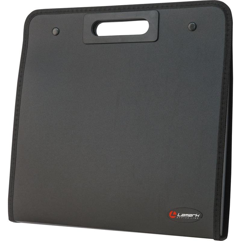 Портфель из сверхжесткого пластика с 13 отделениями и индексными вставками. Портфель на кнопках, с окантовкой. Вырубная ручка.
