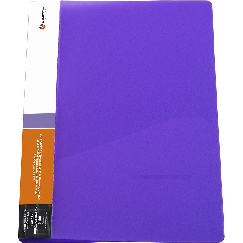 Папка Lamark с боковым пружинным скоросшивателем изготовлена из высококачественного полупрозрачного неонового полипропилена.