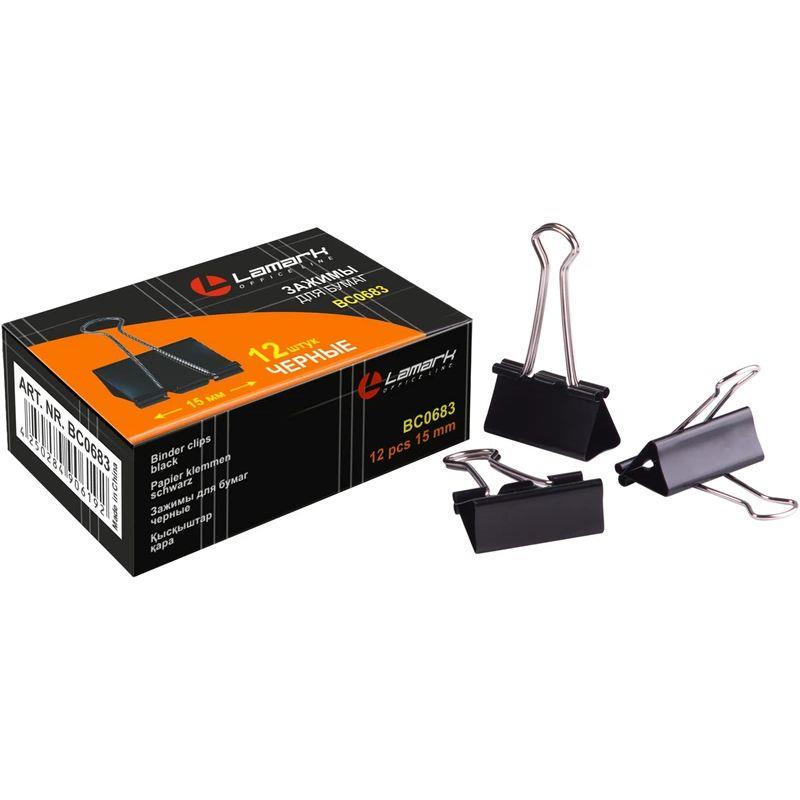 Зажимы для бумаг 15мм 12шт Lamark черные в картонной коробке