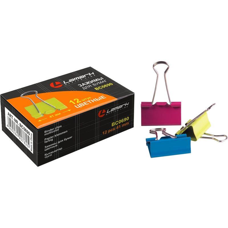 Зажимы для бумаг 41мм 12шт Lamark цветные в картонной коробке