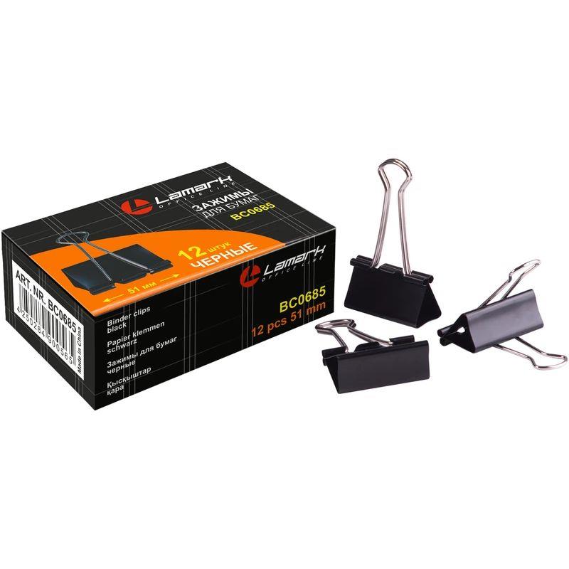 Зажимы для бумаг 51мм 12шт Lamark черные в картонной коробке