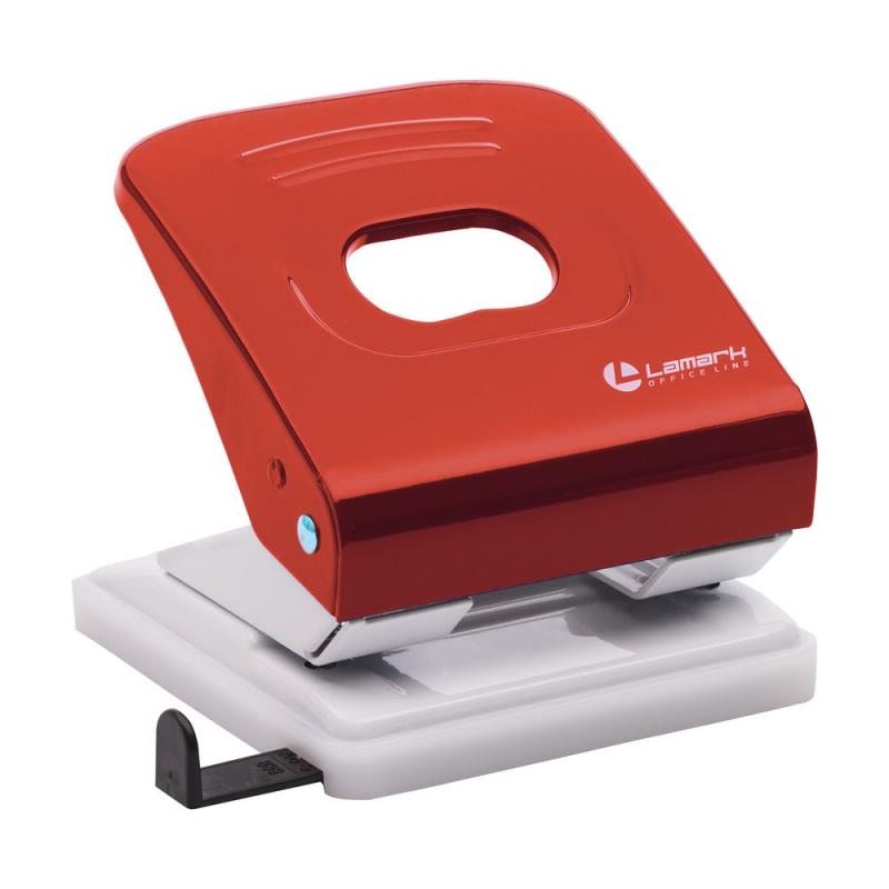 Полностью металлический дырокол Metallic на 2 отверстия диаметром по 5,5 мм, оснащен линейкой деления на форматы и пластиковым поддоном-основанием для сбора пробитой бумаги. Классический дизайн. Усиленные пружины и ножи. Расстояние между отверстиями 80 мм. Пробивает до 30 листов. Идеально сочетается со степлерами Lamark Ulrich.