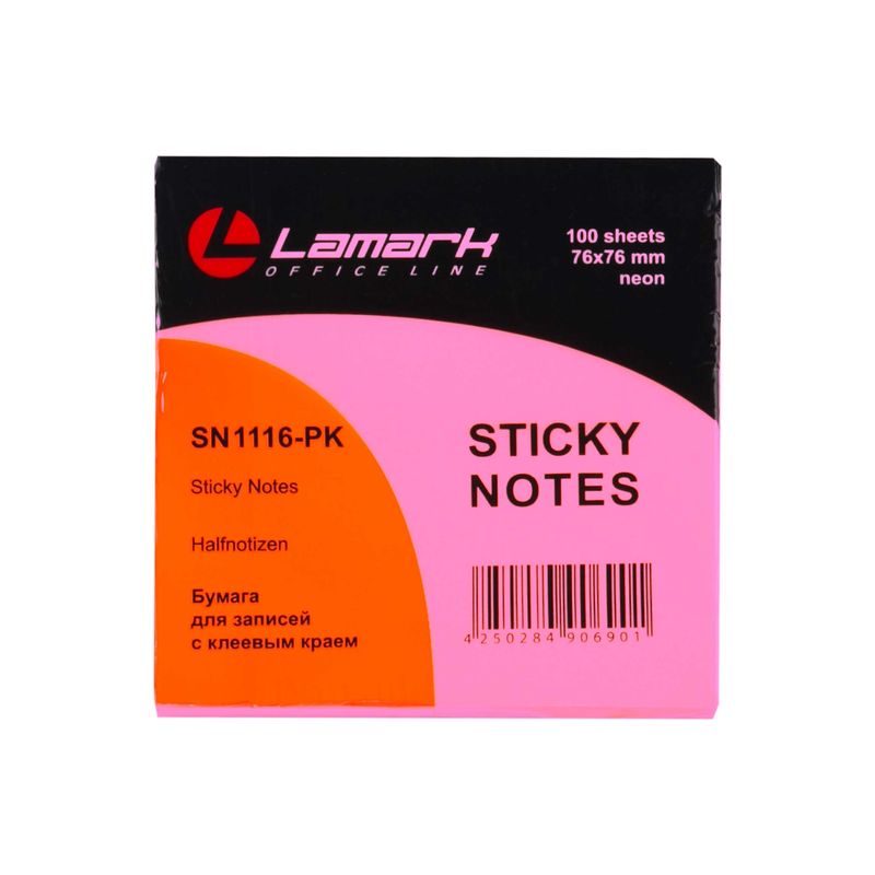Липкий блок  76х 76мм Lamark 100л  неон розовый