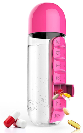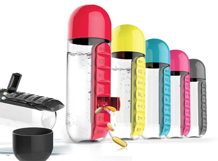 Эта бутылка заинтересует вас с первого взгляда. Все потому, что In Style — это бутылка для воды в сочетании с органайзером для таблеток. С таким аксессуаром вам больше не нужно будет искать воду, чтобы принять необходимые лекарства. Бутылка In Style — практичный и современный способ сохранить ваши таблетки и воду вместе. Это особенно удобно, если вы находитесь в дороге. Бутылка In Style оснащена встроенным органайзером для медикаментов с семью разделами. Если же вам не нужен в данный момент органайзер, вы можете легко его снять, просто сдвинув и потянув в сторону.