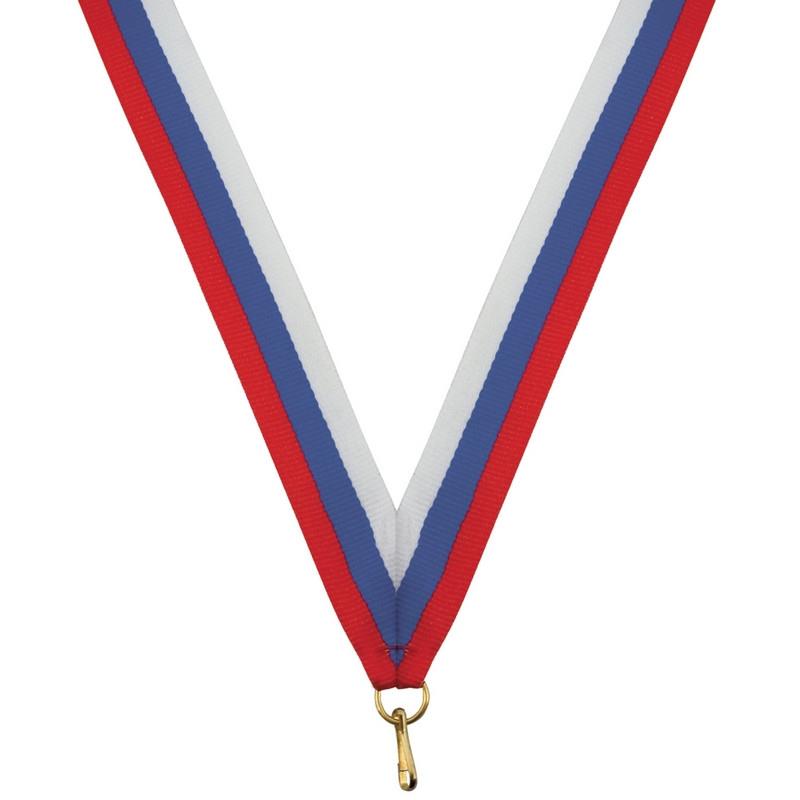 Лента для медалей снабжена металлическим карабином золотистого цвета для крепления медали.