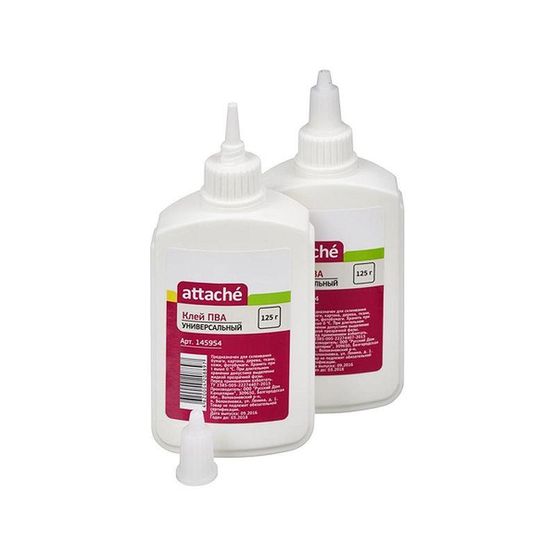 Клей ПВА Attache предназначен для склеивания бумаги, картона, дерева, ткани, кожи, фотобумаги. Отлично подходит для хобби и творчества для взрослых и детей.