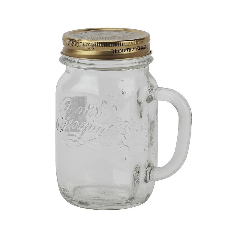 Прозрачная банка Quattro Stagioni с ручкой и крышкой идеально подходит для коктейлей, холодного чая и кофе, а также для мороженого, фруктовых и овощных салатов и обедов. Питье и еда в нетрадиционном банке с ручкой больше, чем тенденция, стала стилем потребления. Удивите своих гостей, подавая ваши десерты внутри этих банок, эффект WOW будет гарантирован! Подходит для мытья в посудомоечной машине и разогрева в микроволновая печь, максимальная температура 50 °C. Не подходит для пастеризации.