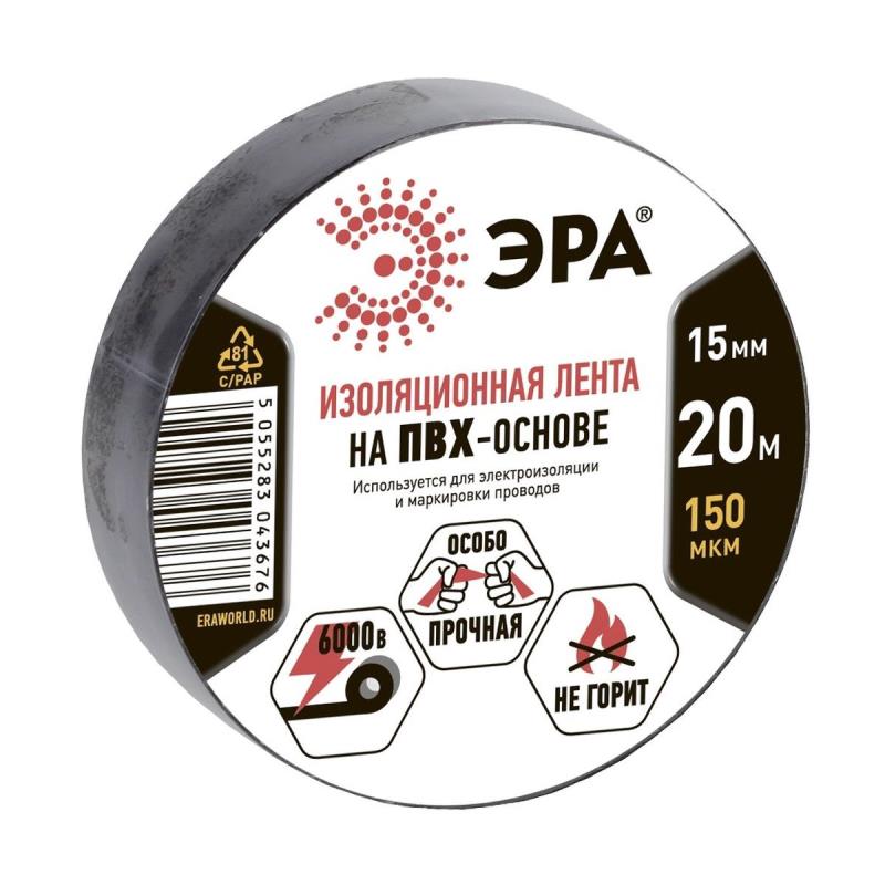 Изоляционная лента 15мм х20м ЭРА ПВХ черная