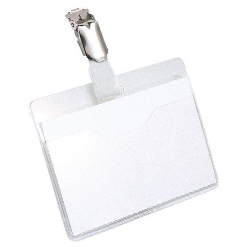 Держатель для бэйджа/ID-карты для посетителей из прозрачного ПВХ с поворотным клипом. Карман открыт на одну треть для быстрой замены вкладыша.