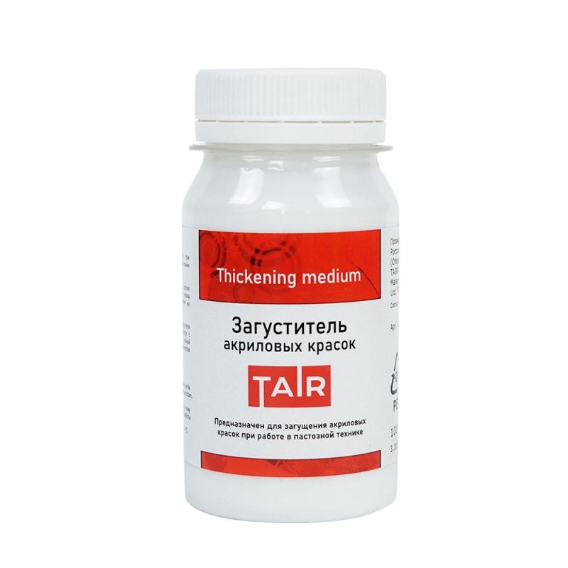 Загуститель акриловых красок применяется для сгущения краски при выполнении работ в пастозной технике. Загуститель это жидкость молочно-белого цвета, которая добавляется к акриловым, темперным или гуашевым краскам для приведения их в пастозное состояние. После загущения красками можно выполнять работы в технике объемного мазка, как при работе масляными красками. После применения загустителя несколько увеличивается время высыхания красок, добавляется дополнительный блеск. Загуститель добавляется в краске с помощью мастихина непосредственно на палитре, перемешивается до однородной консистенции. Чем более густая фактура краски требуется, тем больше нужно добавить загустителя. Все использованные при этом инструменты, тара и кисти промываются водой до того, как загуститель высохнет.