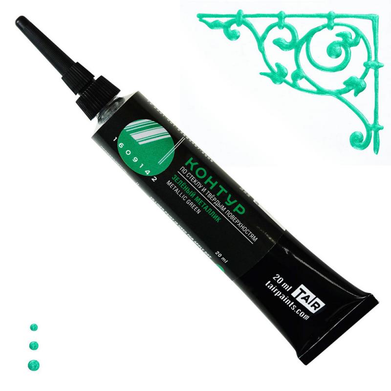 Контур акриловый по стеклу/твёрдым поверхностям Таир  металлик зеленый 20мл