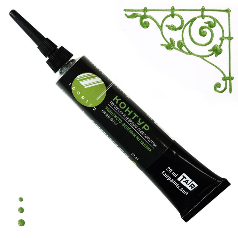 Контур акриловый по стеклу/твёрдым поверхностям Таир  металлик золотисто-зеленый 20мл