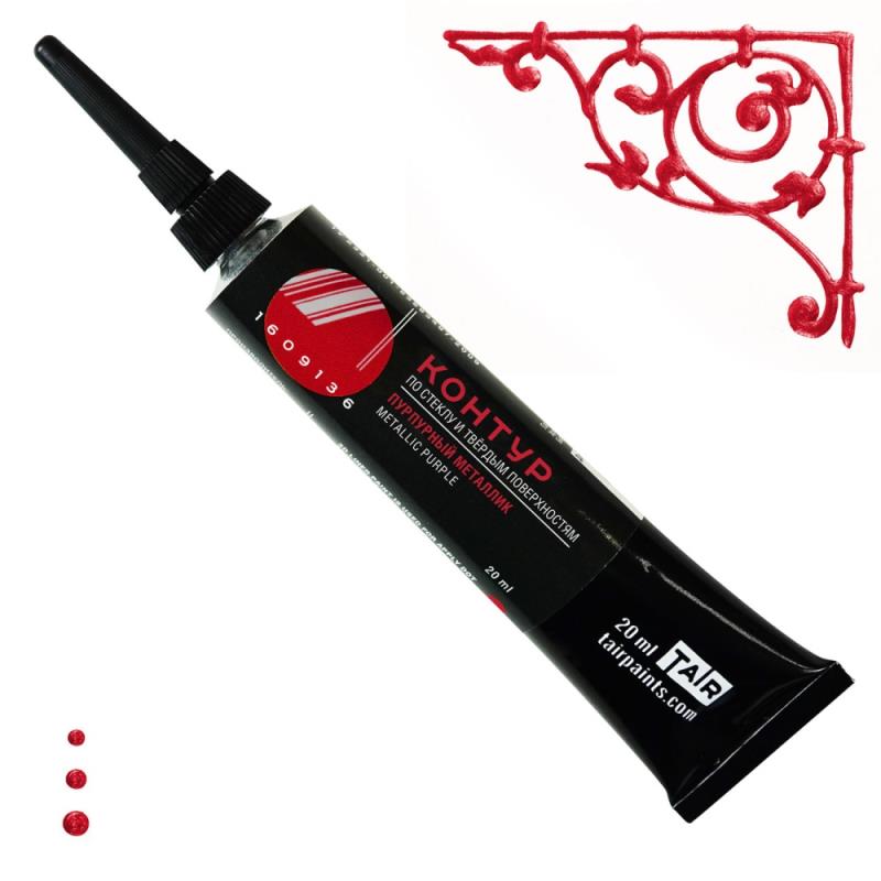 Контур акриловый по стеклу/твёрдым поверхностям Таир  металлик пурпурный 20мл