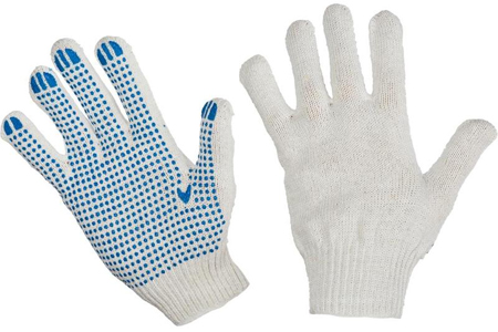Перчатки защищают руки во время ремонтных и строительных работ, обеспечивают надежное сцепление с инструментом. Изготовлены из плотной хлопчатобумажной ткани, имеют долговечное покрытие из ПВХ синего цвета.