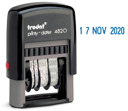 Дата устанавливается вручную. Датер имеет надежный пластиковый корпус с пружинным механизмом и встроенной сменной подушкой синего цвета. Окрашенный оттиск получается автоматически при нажатии на корпус.