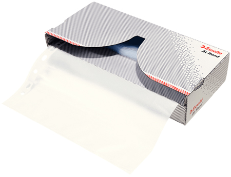 Настольный диспенсер содержит 50 пластиковых карманов с перфорацией, так что в случае необходимости они всегда будут у вас под рукой. Тисненая перерабатываемая пленка CopySafe подходит для длительного хранения. Диспенсер легко разместить в любом удобном для вас месте: на столе, в ящике, возле принтера. Запатентованная коробка позволяет с легкостью извлекать мультифору.