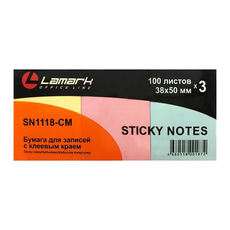 Бумага для заметок с клеевым краем пастельных цветов, в упаковке 3 блока по 100 листов. Листы надежно крепятся на любые поверхности и при удалении не оставляют следов.