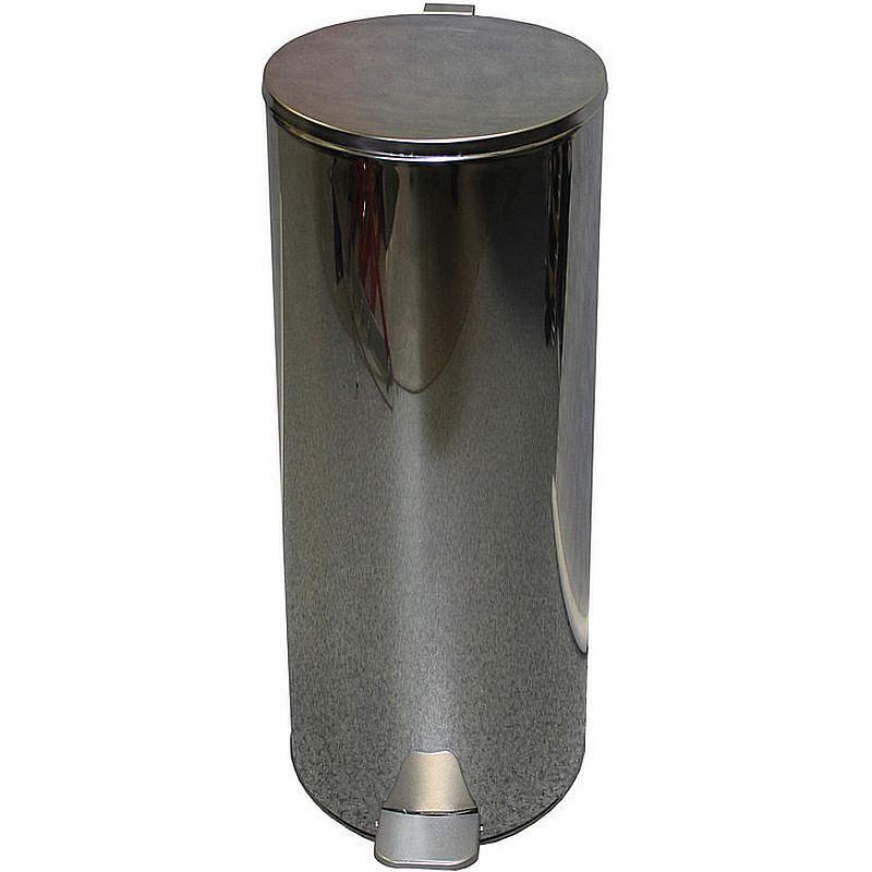 Стационарная урна с педалью выполнена из зеркальной нержавеющей стали. Отличается прочностью, устойчивостью к вмятинам, легко моется обычными средствами и водой.