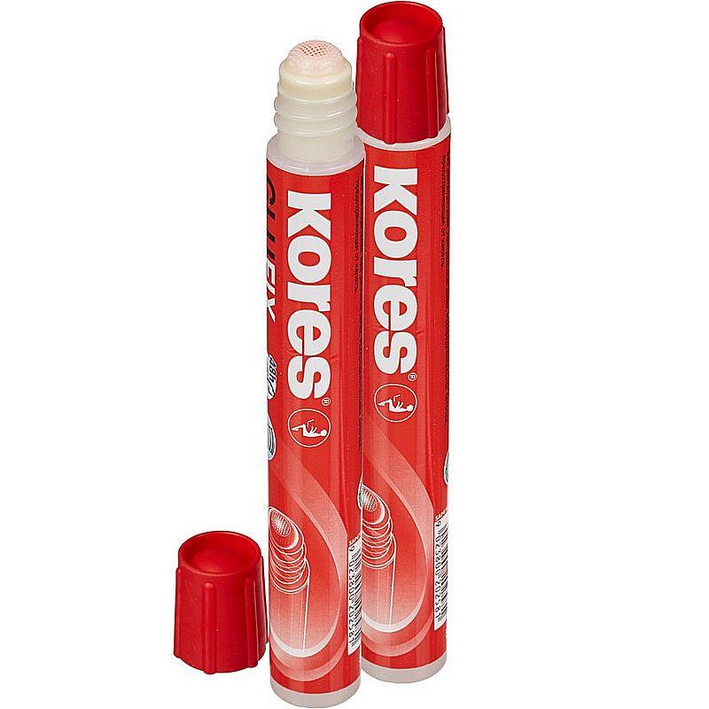 Канцелярский клей Kores с с силиконовым аппликатором, обеспечивающим легкое и равномерное нанесение, а также защищающим от засыхания до 48 часов при открытом колпачке.