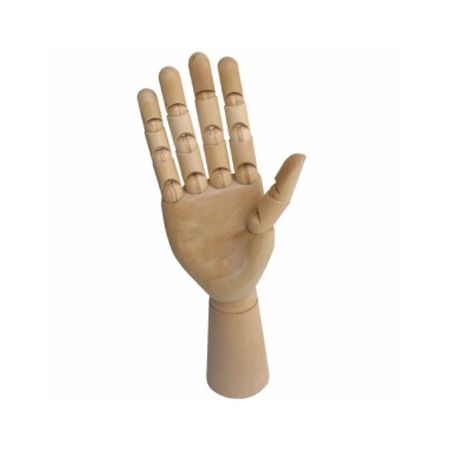 Модель выполнена из дерева, воспроизводит форму реалистичной кисти и сгибается в тех же местах, что и человеческая.
