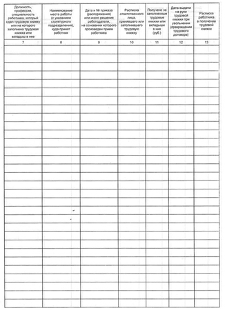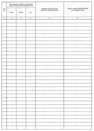 Бухгалтерская книга для учета движения трудовых книжек и вкладышей в них. Обложка изготовлена из картона белого цвета. Внутренний блок — офсетная бумага, 48 листов, крепится к обложке с помощью скрепок.