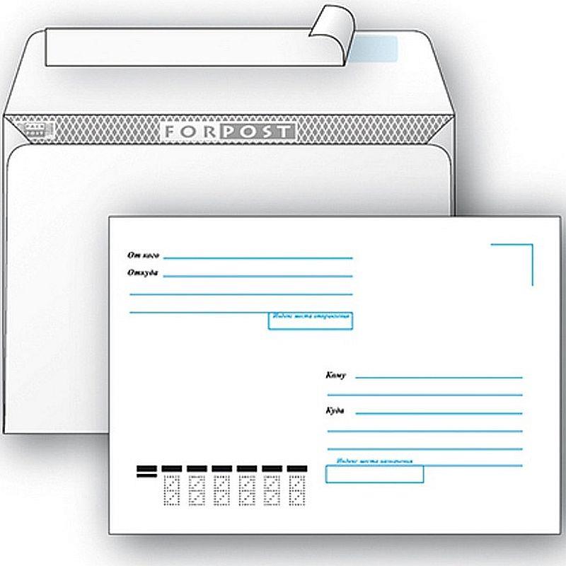 Конверт С4 (229х324 мм) выполнен из офсета 90 г/м², имеет клеевое нанесение типа стрип (отрывная силиконовая лента) и почтовый подсказ «Куда-Кому».
