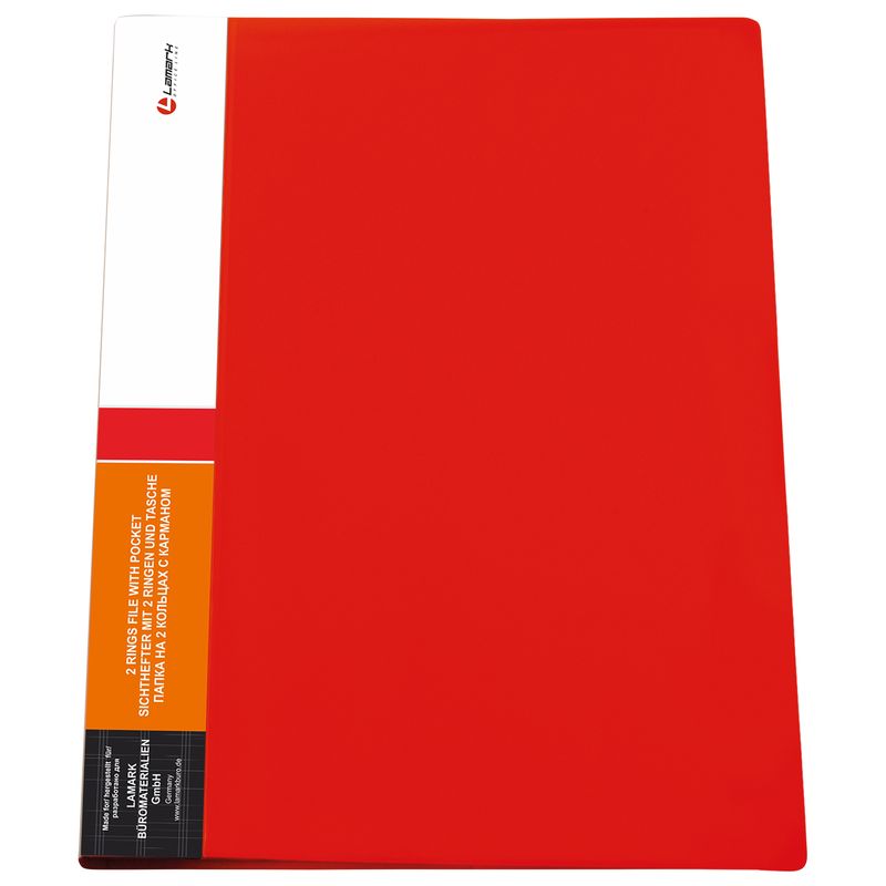 Папка A4  2 кольца 35мм (O) на 280л Lamark пластиковая красная