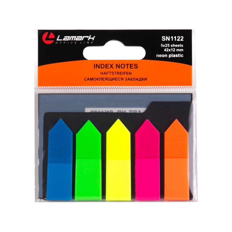 Закладки Lamark 12х42мм 5цв х 25шт Стрелки неоновые пластиковые
