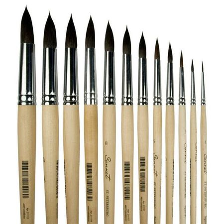 Кисть из волоса белки с короткой деревянной ручкой, пропитанной лаком, круглая. Используется для создания рисунка и фактуры, работы над деталями.