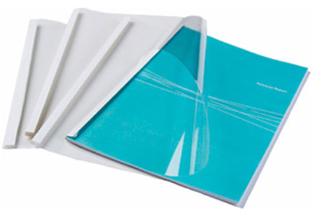 Обложка предназначена для оформления документов с помощью термопереплетчика. Толщина корешка 8мм, что позволяет сшивать от 61 до 80 листов. Верх обложки — прозрачный ПВХ (150 мк), низ — глянцевый картон (220 г/м²).