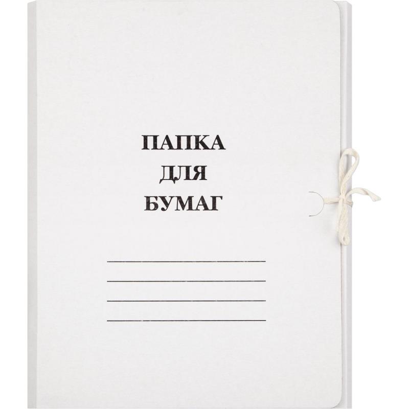 Папка для бумаг формата А4 с завязками изготовлена из мелованного картона белого цвета. На лицевой стороне есть поля для подписывания. Три внутренних клапана надежно удерживают документы.