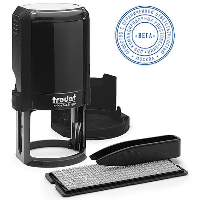 Печать представляет собой надежный пластиковый корпус с пружинным механизмом, встроенной сменной подушкой синего цвета и рифленой текстовой площадкой, на которой набирается текст. Окрашенный оттиск получается автоматически при нажатии на корпус.