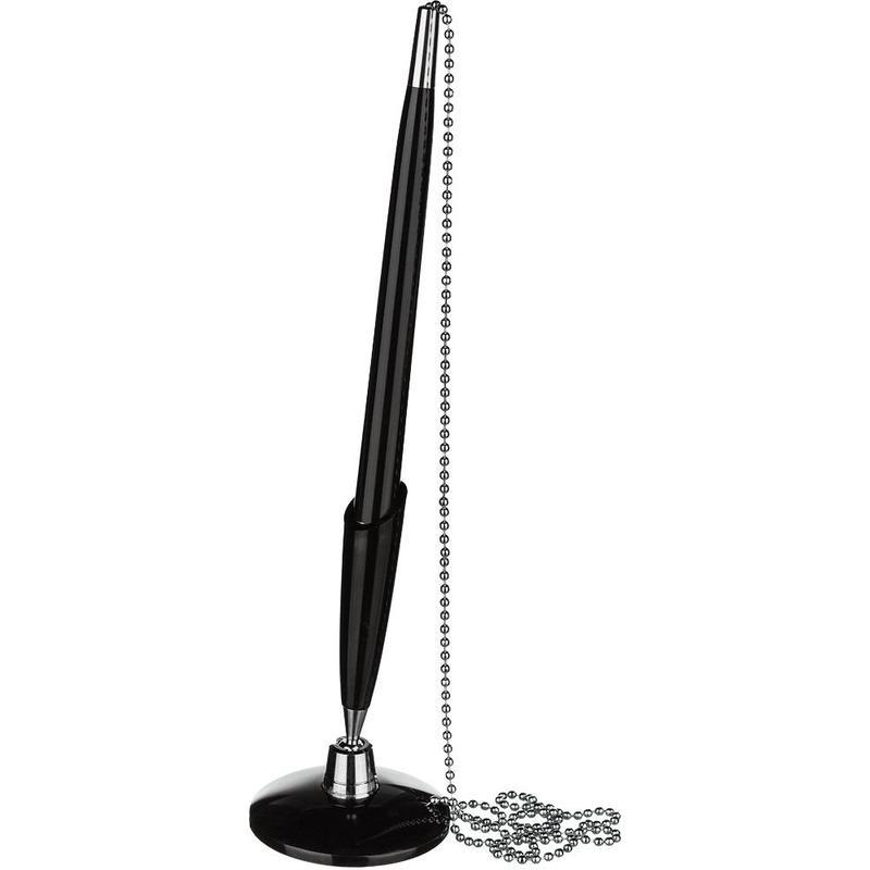 С одной стороны крепится к металлической цепочке, а с другой - к специальной подставке с липким основанием для установки на столах или тумбах.