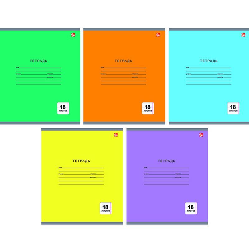 Тетрадь A5  18л линейка на скрепке Unnika land® однотонная картонная обложка 5 цветов