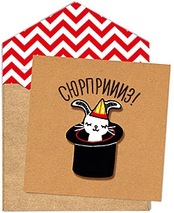 Внутри: А вот и он, твой День Рождения! Отделка: Накладная деталь. Упаковка: Крафтовый конверт в красно-белую полоску. Индивидуальная упаковка в пакет.