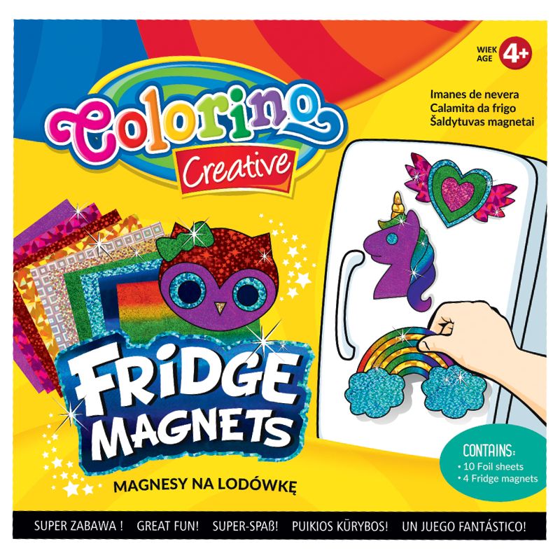 Инструкция: Очистить магнит от белой бумаги. Положить фольгу (цветной частью вверх) на деталь с клеевым слоем. Тщательно разгладить фольгу на магните. Аккуратно снять остаток фольги. Повторить работу с другими цветами. Магнит готов!