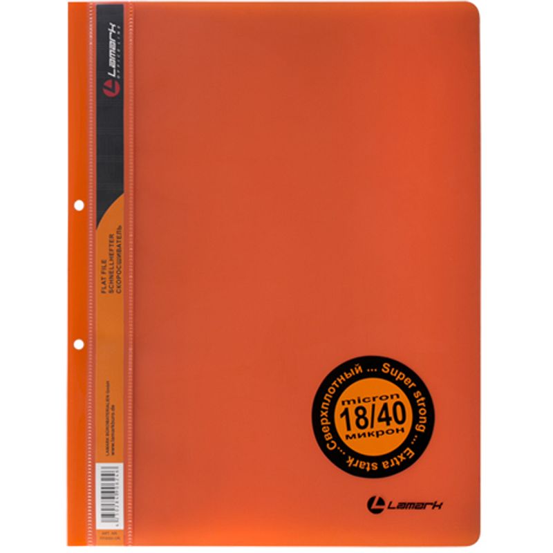 Скоросшиватель пластиковый A4 с перфорацией Lamark 400/180мкм оранжевый